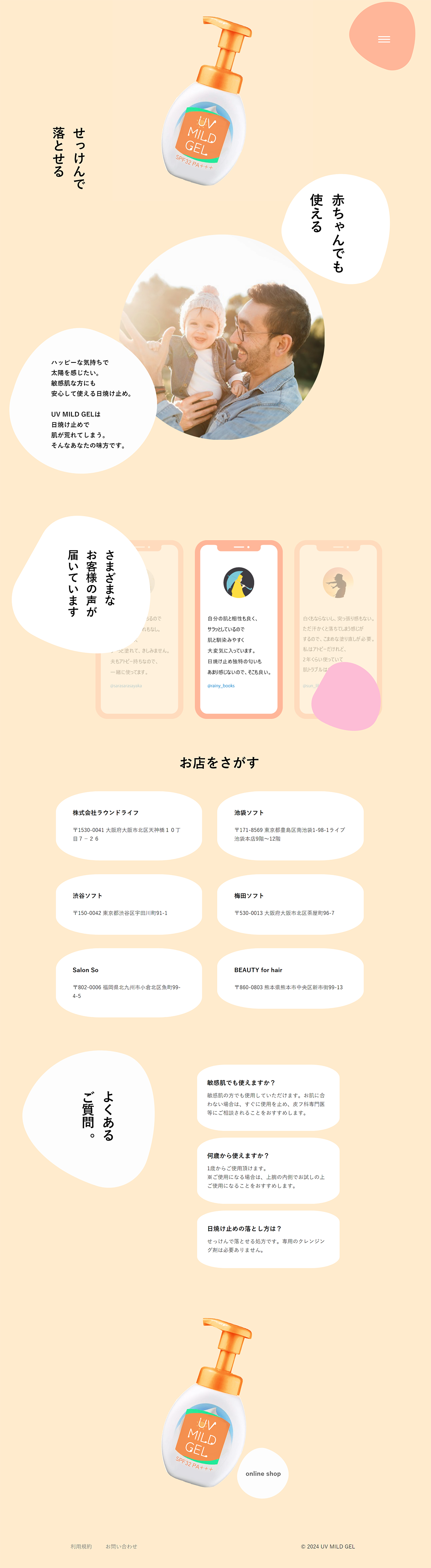 背景に円を置き、日焼け止めのジェル(液状)を連想させる装飾。
